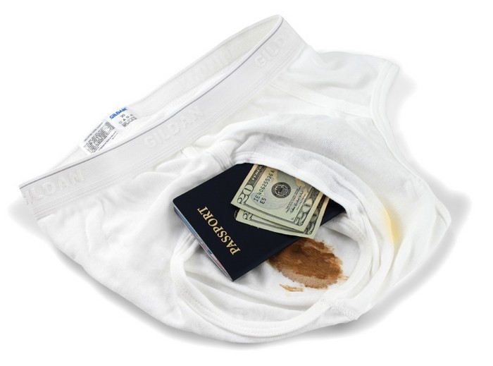 Есть вполне современные варианты перевозки ценностей в белье. Правда, его для этого не нужно надевать на себя. Набор с названием Brief Safe представляет собой трусы с кармашками для денег и документов.